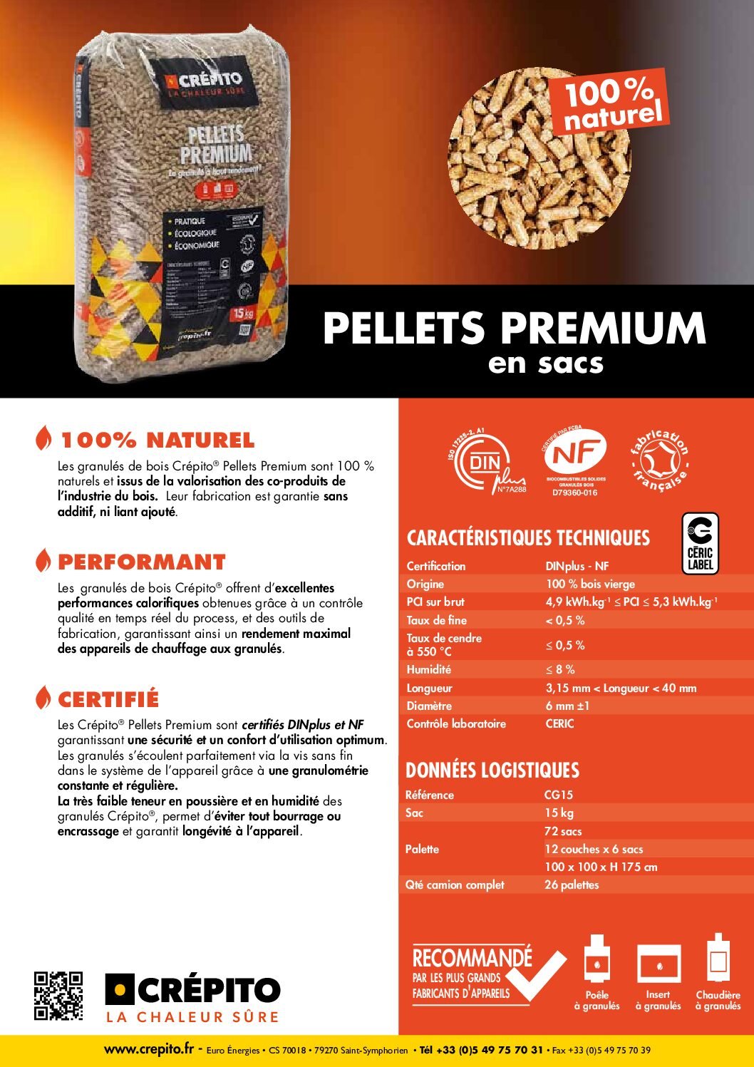 Certifiés NF et DINplus, les granulés de bois Crépito® ont été testés et approuvés par le laboratoire CERIC, garantissant leur qualité. Parmi leurs caractéristiques :